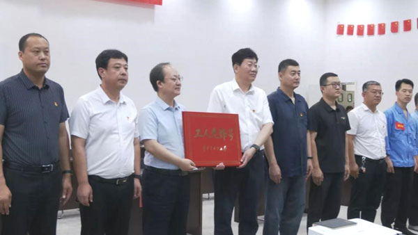 授牌儀式上,趙洪濤宣讀了《中華全國總工會關于表彰2022年全國五一勞動獎和全國工人先鋒號的決定》。徐澤林為榮獲“全國工人先鋒號”的滄州四星玻璃股份有限公司制瓶二車間頒發了表彰授牌,并合影留念。