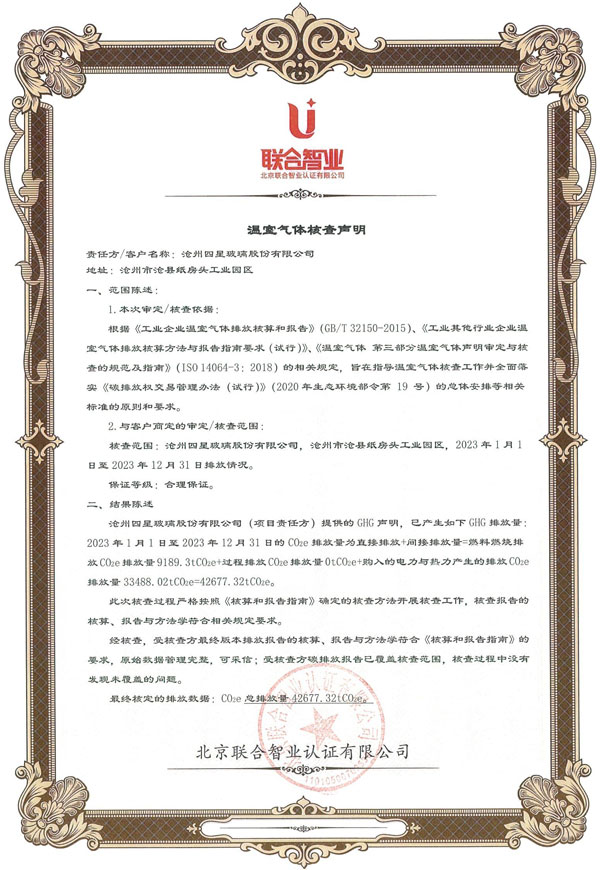 附件:滄州四星玻璃股份有限公司產(chǎn)品碳足跡報告  [點擊查看詳情]